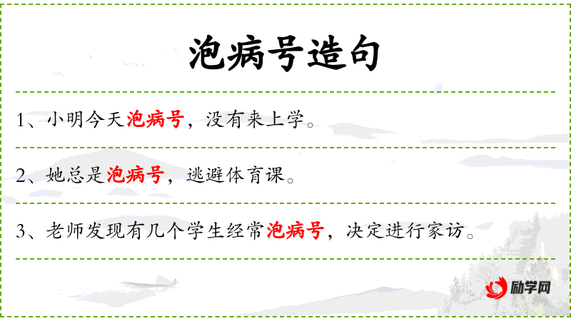 5. 【泡病号】 - 指借故称病长期不上班或小病大养。