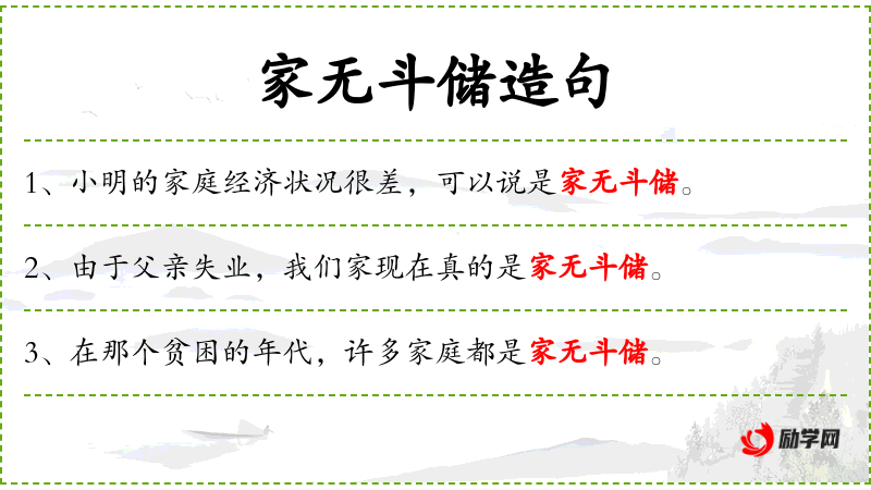 - 家无斗储:指家中没有积蓄或财富。