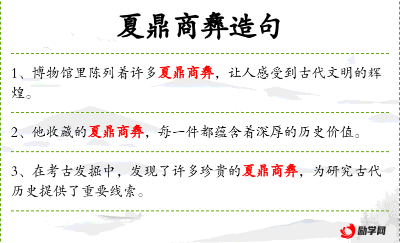 句子:“在历史的长河中,夏鼎商彝见证了一个时代的兴衰变迁。”