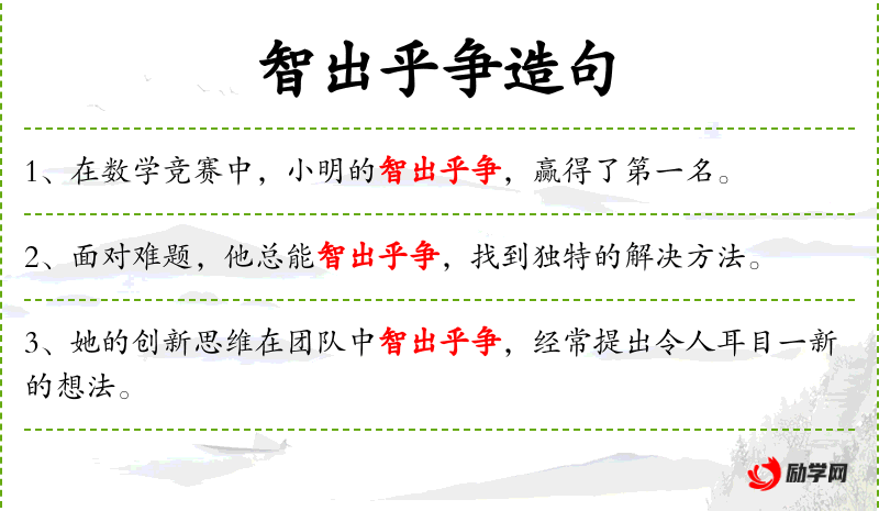 3. 【智出乎争】 - 争:斗争。聪明才智是在反复斗争中锻炼出来的。比喻智慧来源于实践。