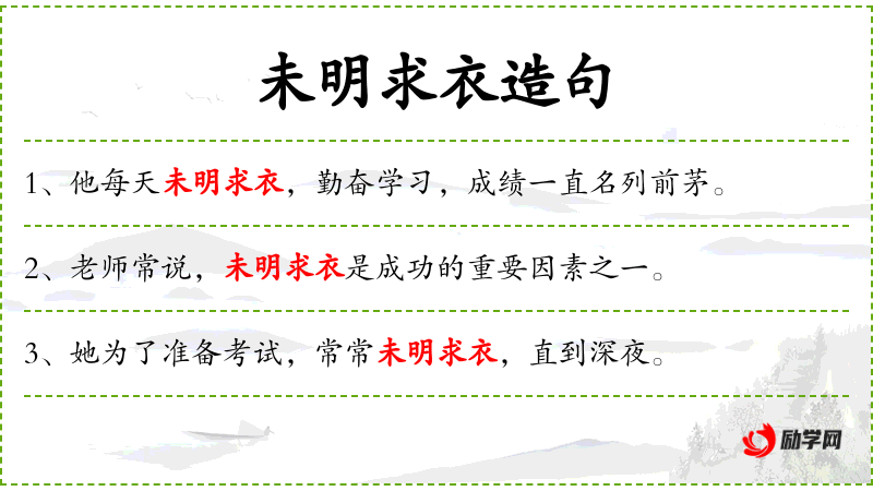 3. 【未明求衣】 - 天没有亮就穿衣起床。形容勤于政事。