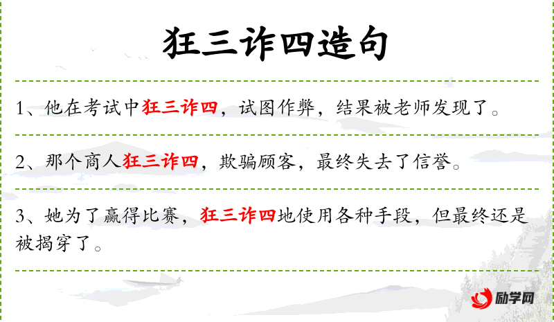 1. 【狂三诈四】 - 狂:诓的假借,诓骗。一味欺诈。