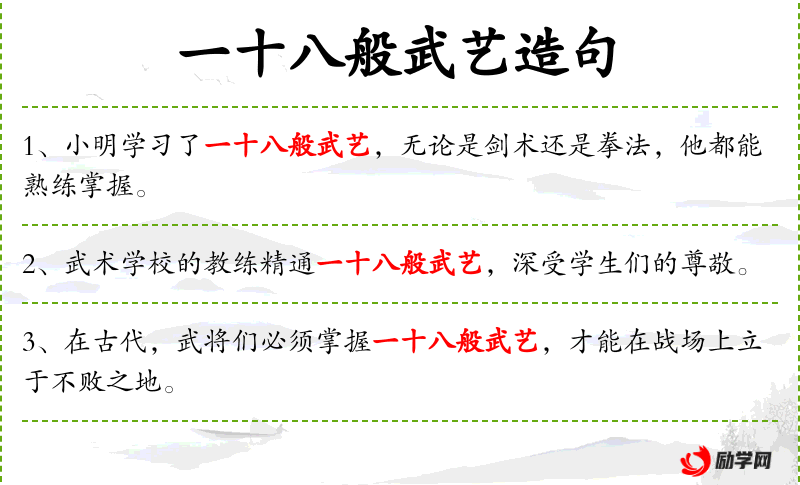 - 宾语:一十八般武艺