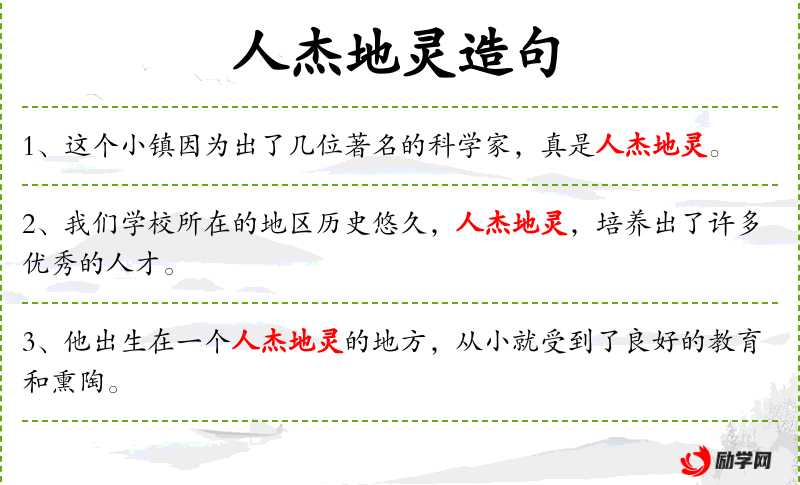 - 人杰地灵:指地方出人才,环境好。