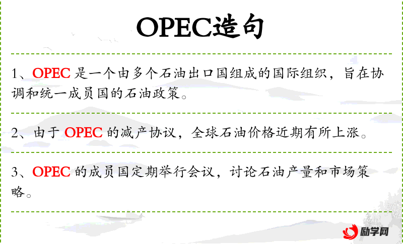 1. 【OPEC】 石油输出国组织;欧佩克。
