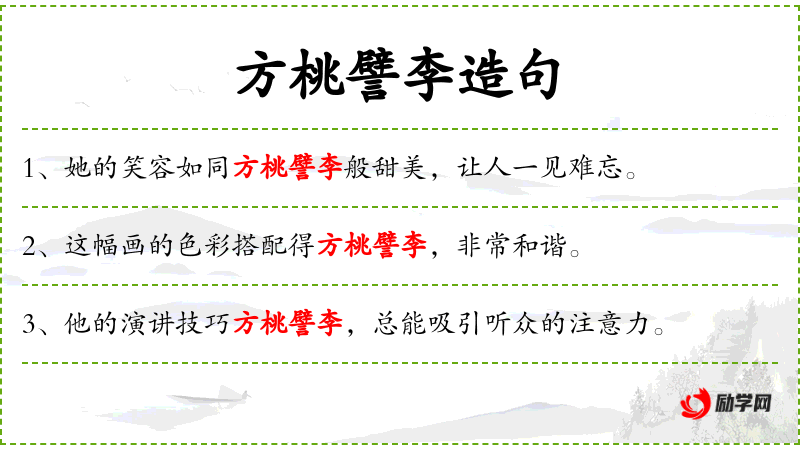 - 文化意义:成语“方桃譬李”体现了中文表达的含蓄和形象,通过自然界的美好事物来比喻歌声的美妙。