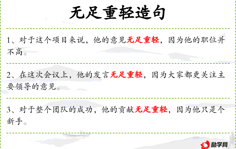 - 无足重轻:表示某人的角色或作用不重要或不被重视。