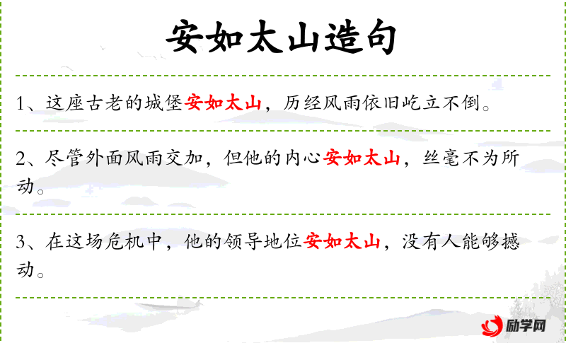 - 在不同的文化和社会背景中,“安如太山”的比喻可能需要适当的解释才能被完全理解。