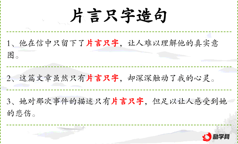 1. 【片言只字】 - 不多的几句话,极少的几个字。指零碎的文字材料。