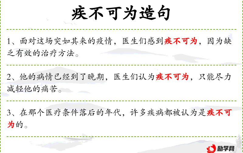 7. 【疾不可为】 疾:病;为:治。病已不可医治。比喻已到了绝境。