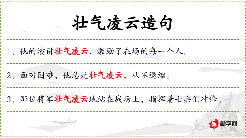 - 壮气凌云:形容气势雄伟,志向高远。