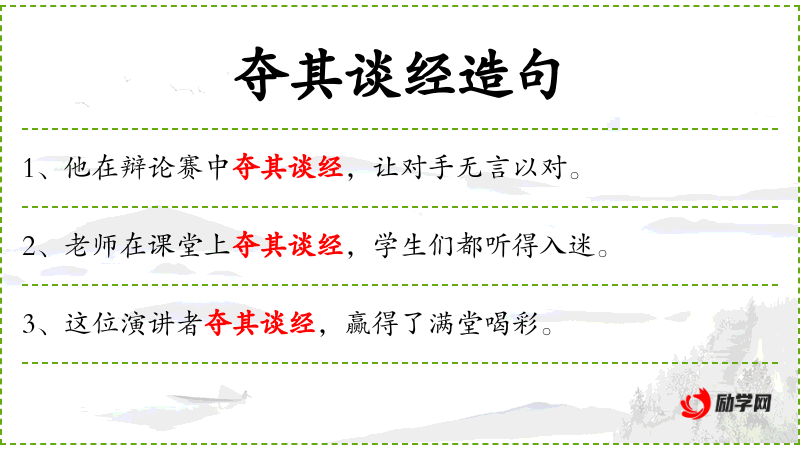 句子:“老师在课堂上夺其谈经,学生们都听得入迷。”