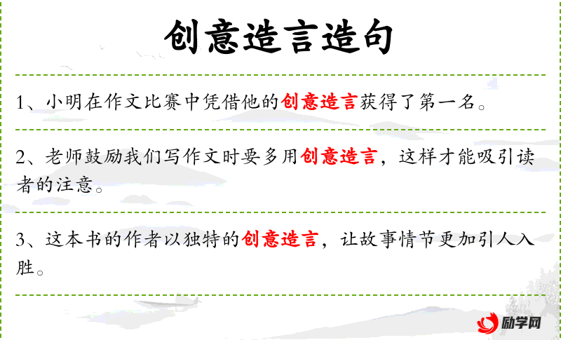 - 创意造言:名词短语,表示有创意的表达方式。