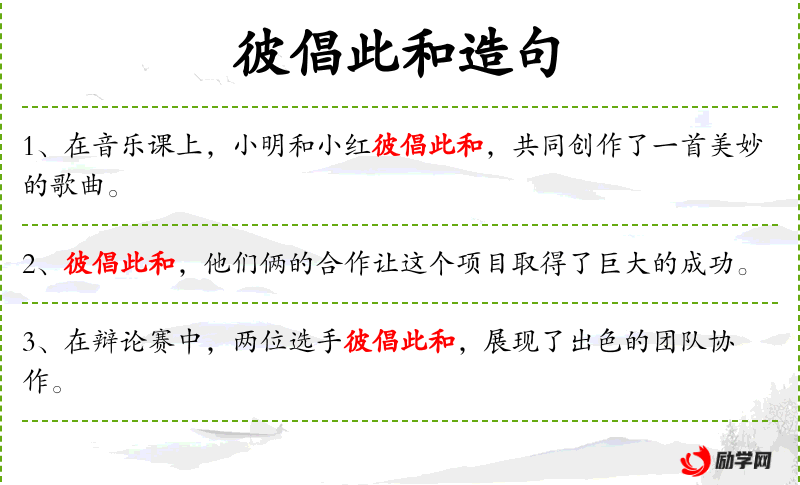 句子:“彼倡此和,他们一起解决了这个复杂的数学难题。”