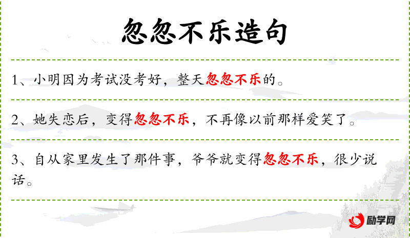 - 忽忽不乐:郁郁寡欢、闷闷不乐