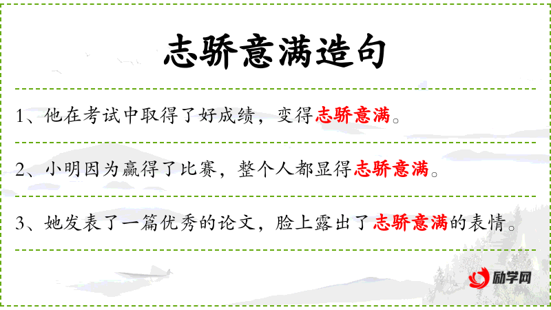 - 志骄意满:成语,形容人因为成功而感到非常骄傲和满足。