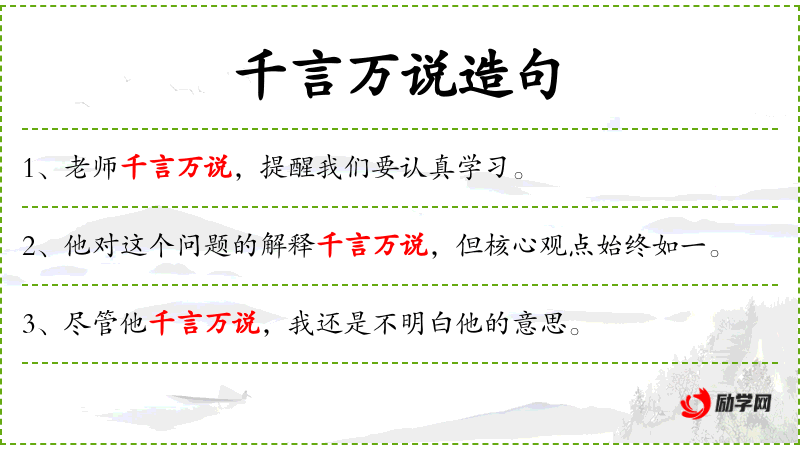 - 千言万说:形容说话很多,试图通过大量的话语来说服对方。