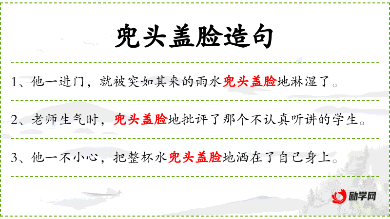 1. 【兜头盖脸】 正对着头和脸。
