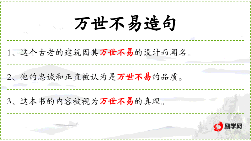 1. 【万世不易】 - 易:改变。永远不改变。亦作“万代不易”。
