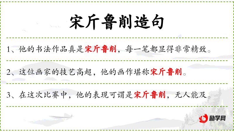 “宋斤鲁削”这个成语源自**古代,用来形容技艺精湛。在现代语境中,使用这个成语可以增加句子的文化底蕴,使得表达更加丰富和有趣。