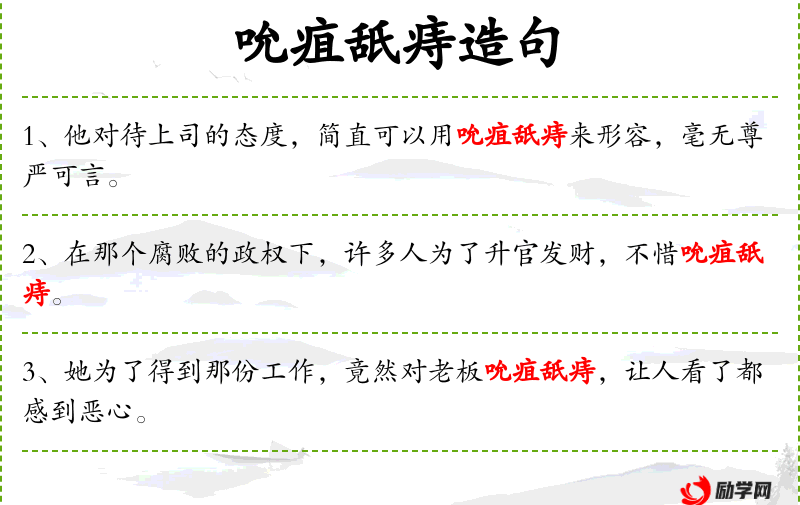 句子:“[他的谄媚行为,简直是在吮疽舐痔,让人感到十分厌恶。]”